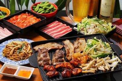 牛、豚、鶏、羊お肉、焼き野菜、焼きそばが食べ放題でビール、ワイン、カクテルが食べ飲み放題!!!